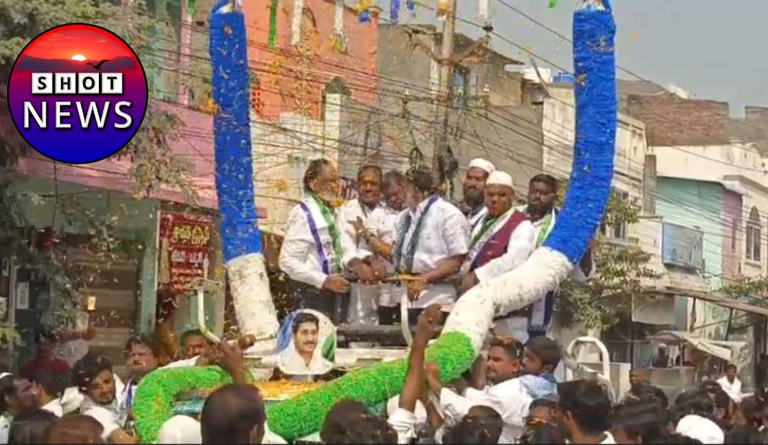 మెడికల్ కళాశాలల ప్రైవేటీకరణకు వ్యతిరేకంగా సంతకాల సేకరణ సందర్భంగా భారీ హారంతో అన్నాకు స్వాగతం పలికిన కరీముల్లా..