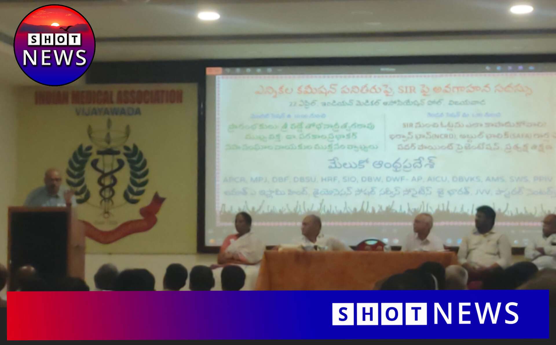 విజయవాడ: మేలుకో ఆంధ్రప్రదేశ్ ఆద్వర్యంలో ఎన్నికల సంఘం పనితీరు, SIR అవగాహన సదస్సును విజయవాడలోని స్వర్ణ ప్యాలెస్ ఎదురుగా ఉన్న ఇండియన్ మెడికల్ అసోసియేషన్ హాలులో నిర్వహించారు.
